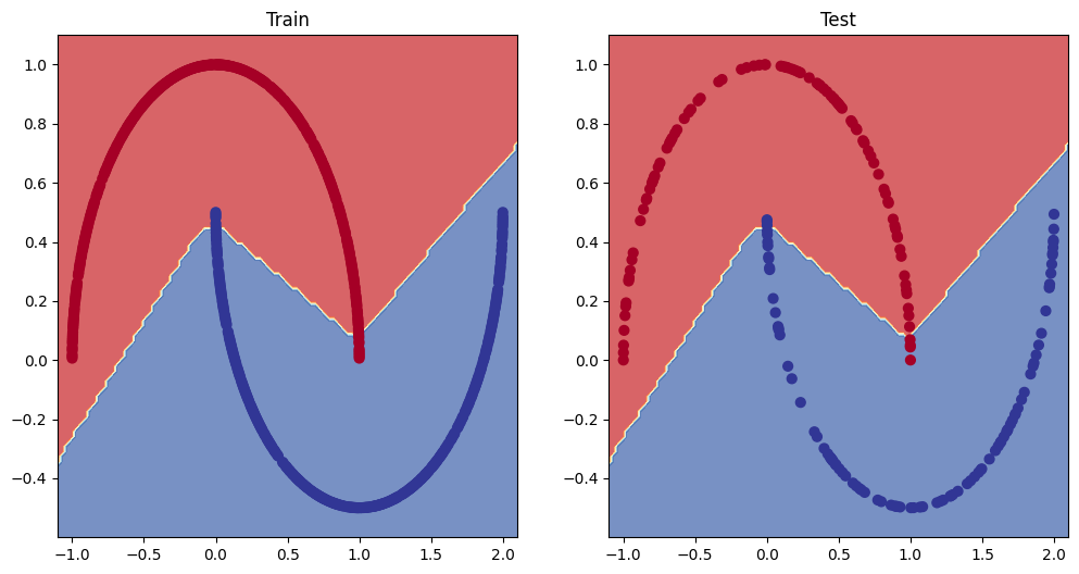 print(f"EPOCH {e} | BCELOSS TRAIN {train_loss} | TRAINING ACC {train_acc} | TESTING ACC {test_acc}")Output: