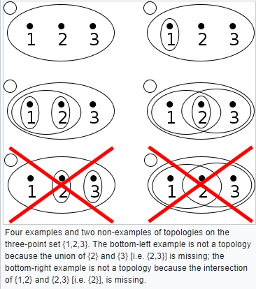 A Topological Space is a pair where is a set and is a collection of subsets of X called open sets.