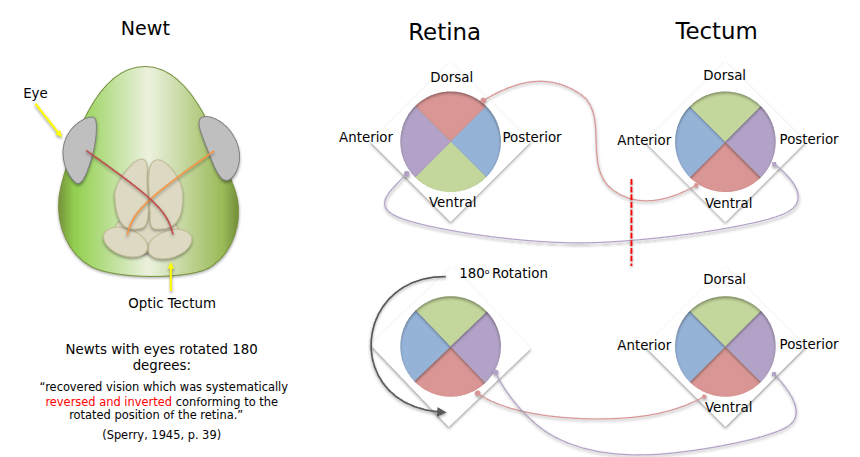 They surgically rotated a newt’s eye 180 degrees. The neurons on the inside were able to reconnect correctly. Shows that there had to have been some sort of physico-chemical intrinsics to guide the neurons back to the right place.