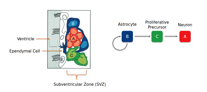 - Subventricular Zone: near the lateral ventrical.