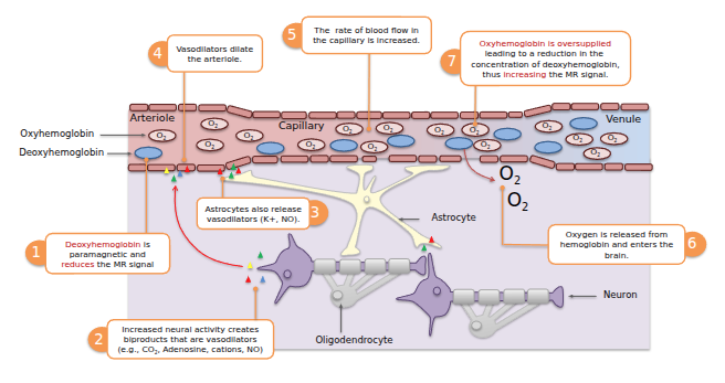 The difference in the concentration can be picked by the MRI machine, and the difference can be used to see areas of increased neuronal activity.