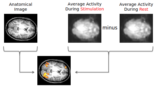 Uses Magnetic Resonance Imaging (MRI) while the participant is doing some sort of task. That task constricts capillaries, causing the overflow of deoxygenated blood cells (deoxyhemoglobin) in an area of the brain.