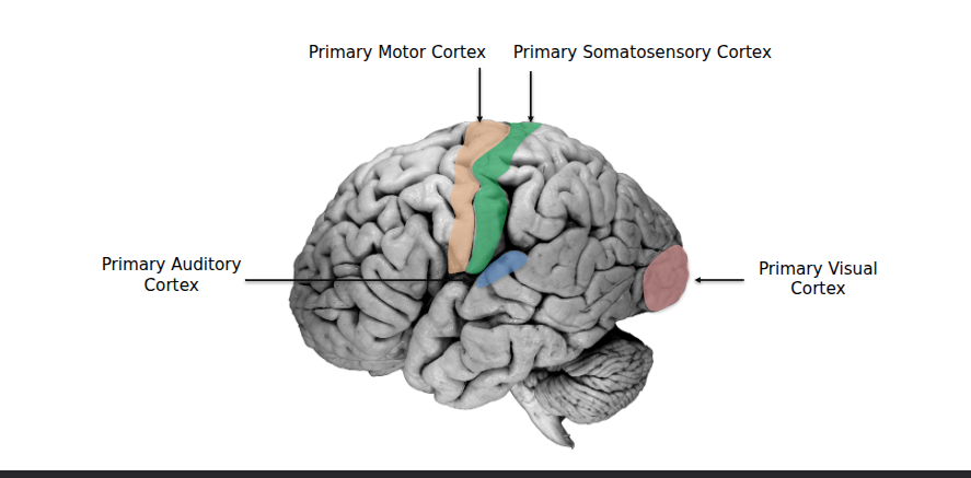 brain cerebralCortex telencephalon forebrain primaryMotorCortex primarySomatosensoryCortex primaryVisualCortex primaryAuditoryCortex