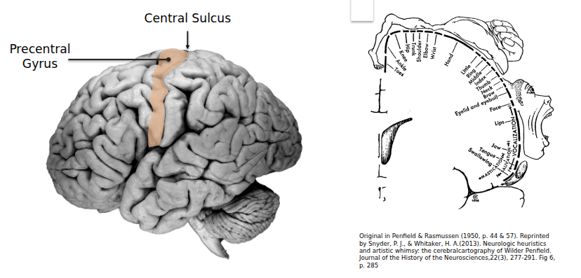 - Motor cortex (precentral gyrus).