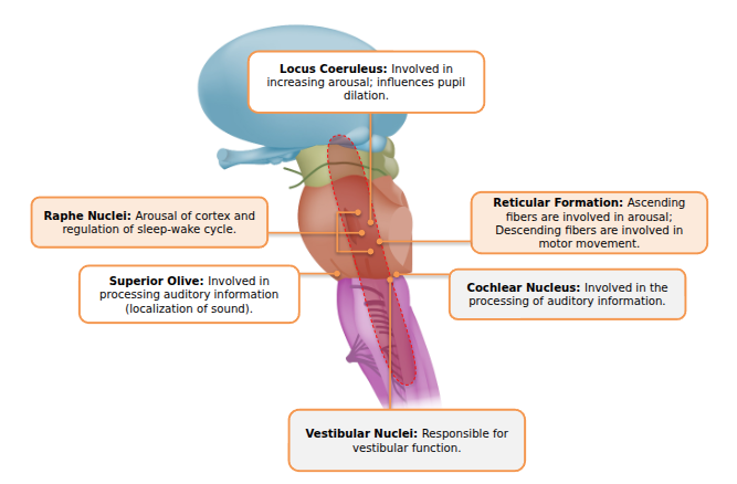 - Also the origin of several cranial nerves (e.g., facial, trigeminal, vestibulocochlear).