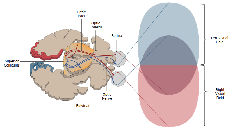 - input of the two eyes remain segregated, allowing for efficient parallel processing