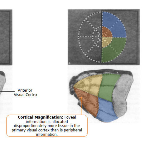 More tissue is disproportionately allocated for the forveal information (center of our receptive field)