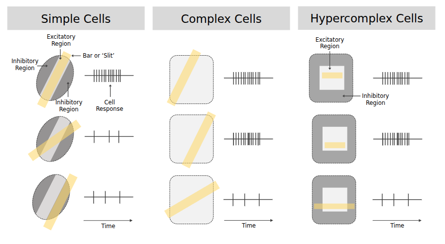 - Hypercomplex Cells: respond to orientated bars of specific length