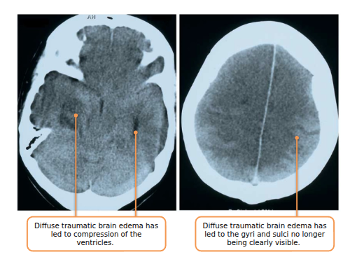 It can occur throughout the brain, which is called diffuse traumatic brain edema.