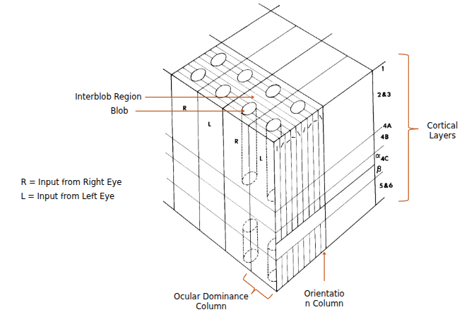 - input of the two eyes remain segregated, allowing for efficient parallel processing