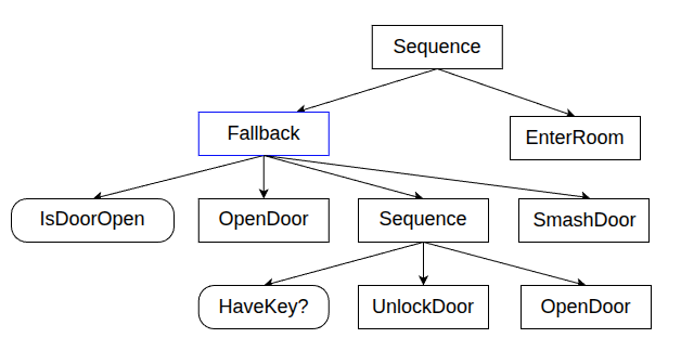 - Control Node (many children) ticks a child based on the result of its siblings or its own state. These nodes control the flow of the ticks (ie. Fallback Node, or Sequence Node)