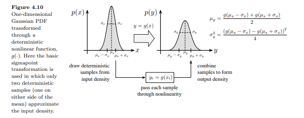 “Brute Force” method to state estimation. Sample a bunch of points in the input distribution Pass through the non-linearity Charactize output sample density